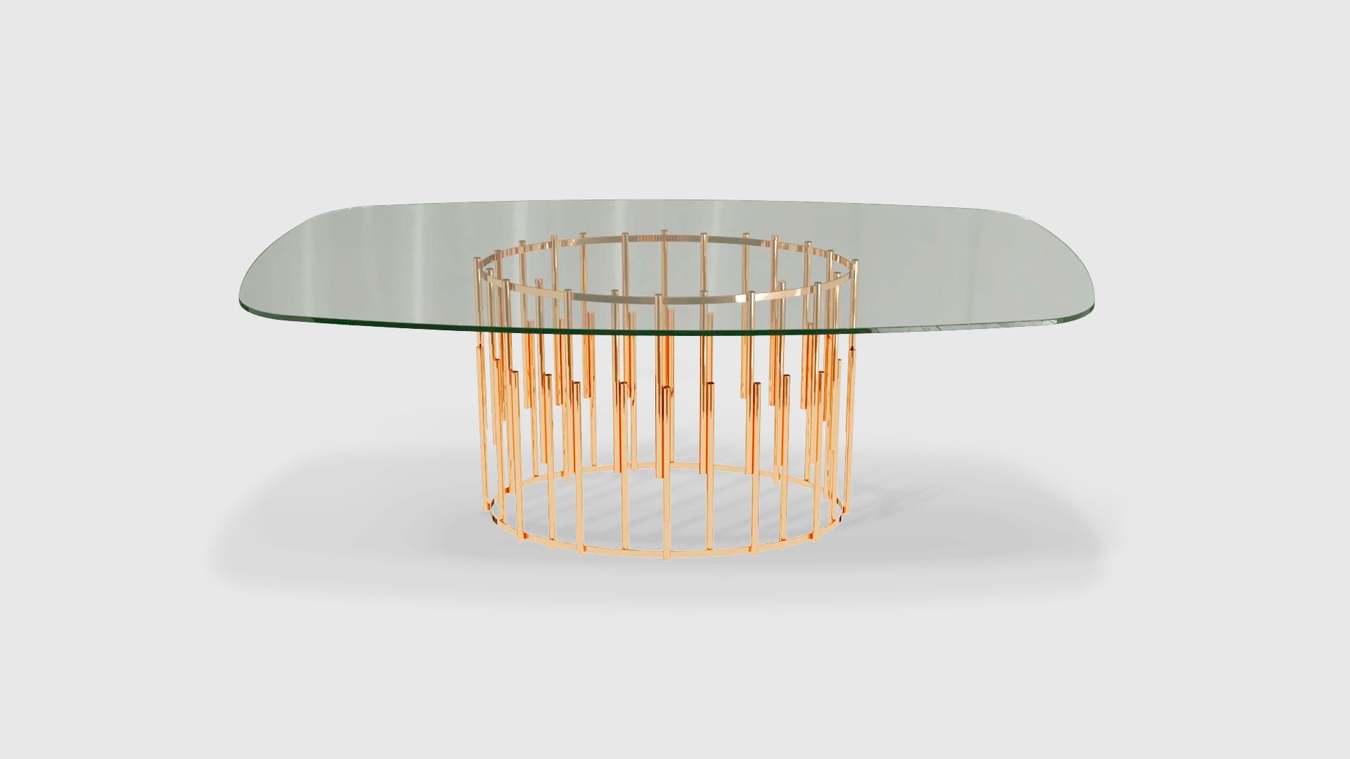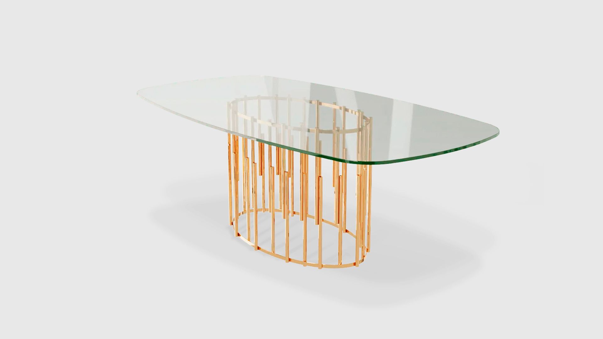 Mesa de tampo em Vidro Transparente c/ Pé em Inox Latonado (Dourado Brilho)