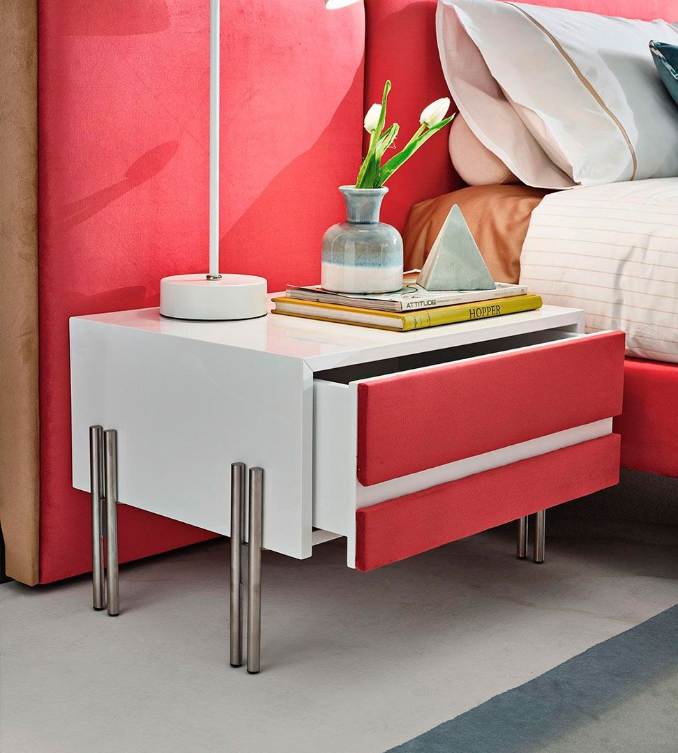 Mesa de Cabeceira 1 Gaveta Estofada e Lacado Mate