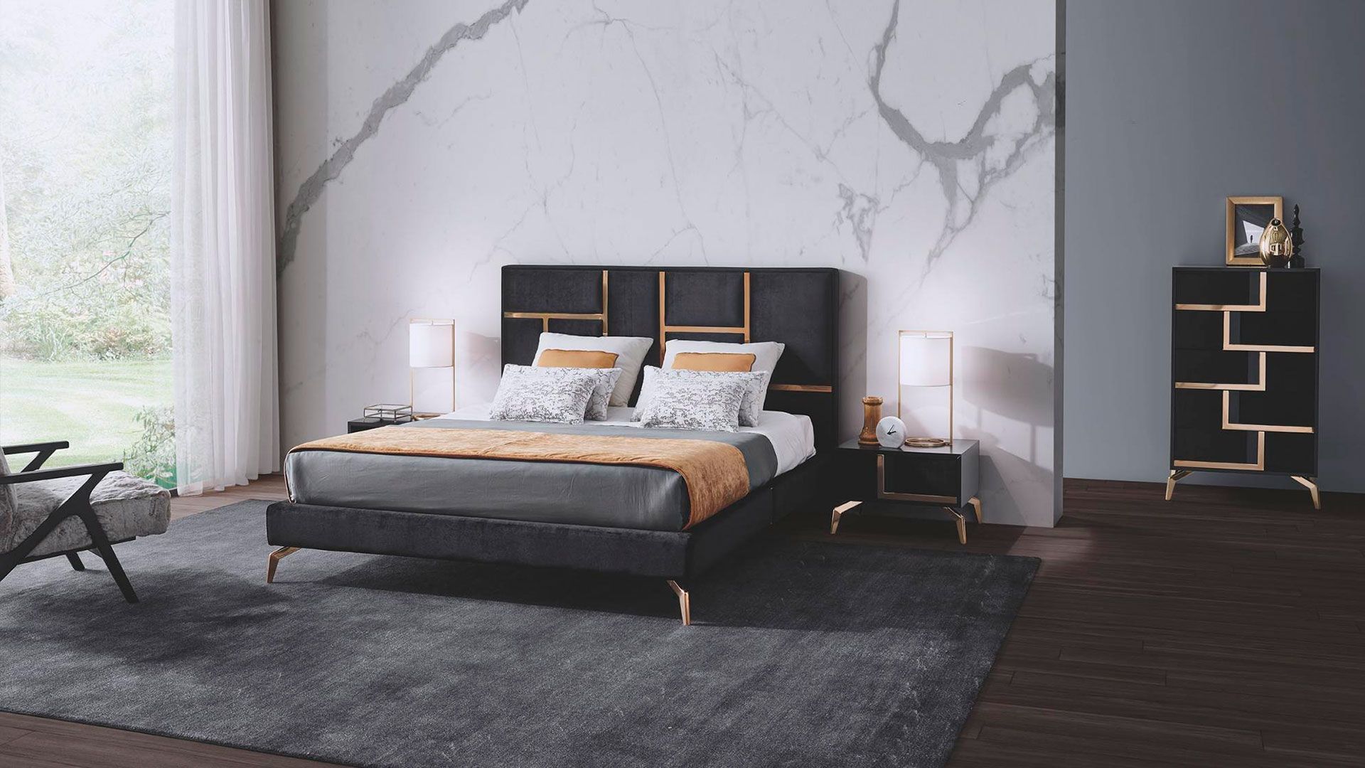 Cama Aqua c/ Acabamentos Inox Gold L.176 x P.222 x A.120/31 cm